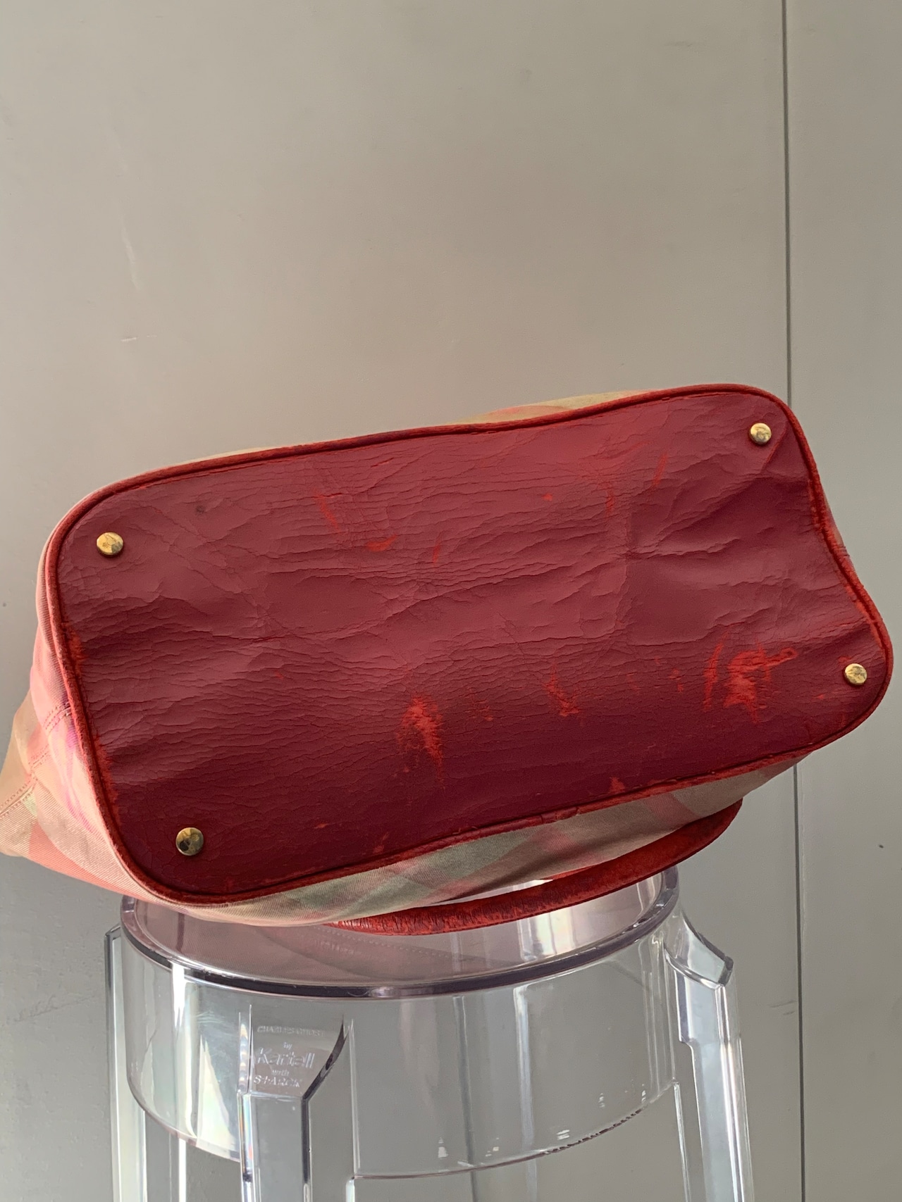 ピンクが纏われた軽快なルックスのトートバッグ。
