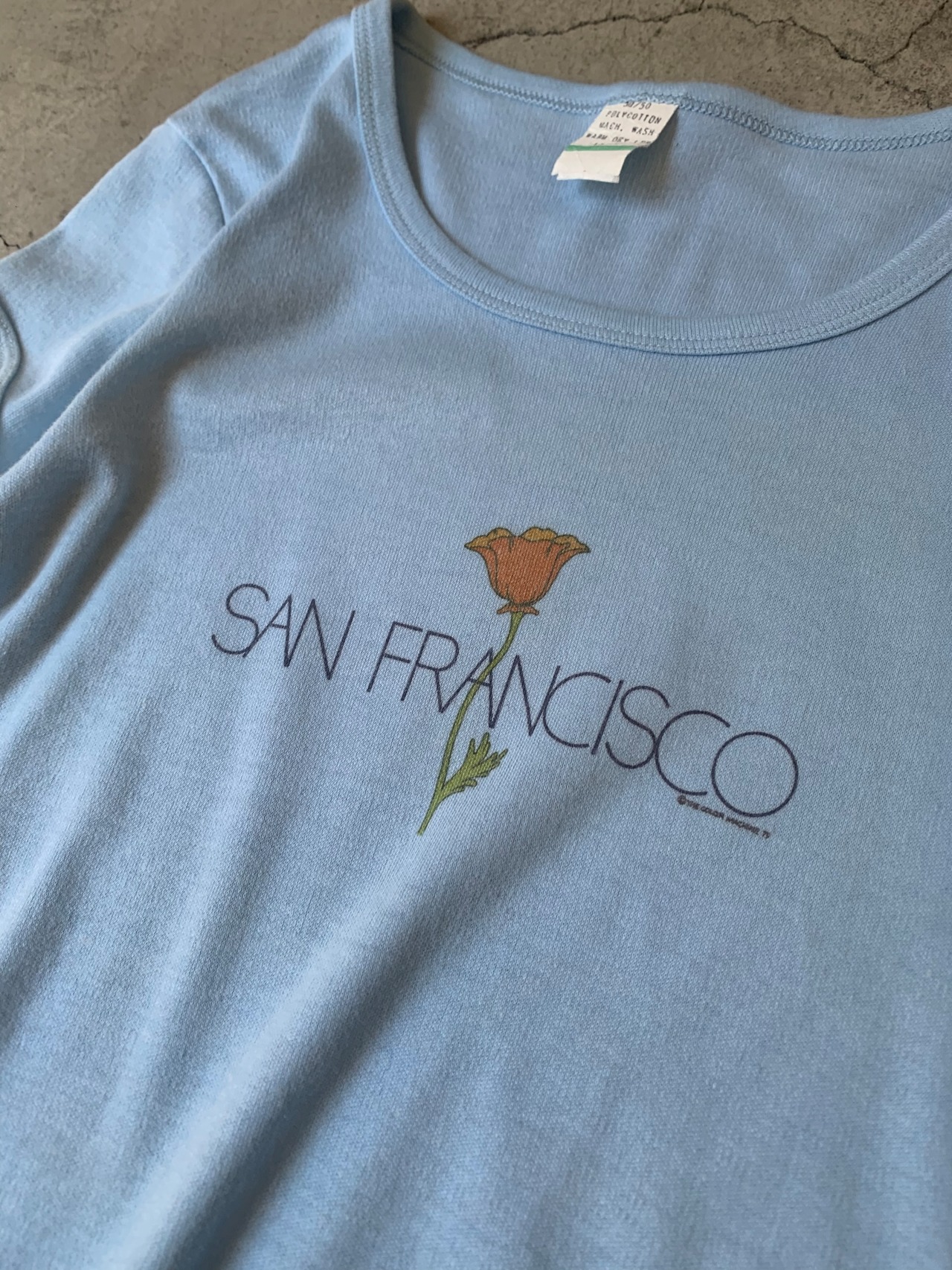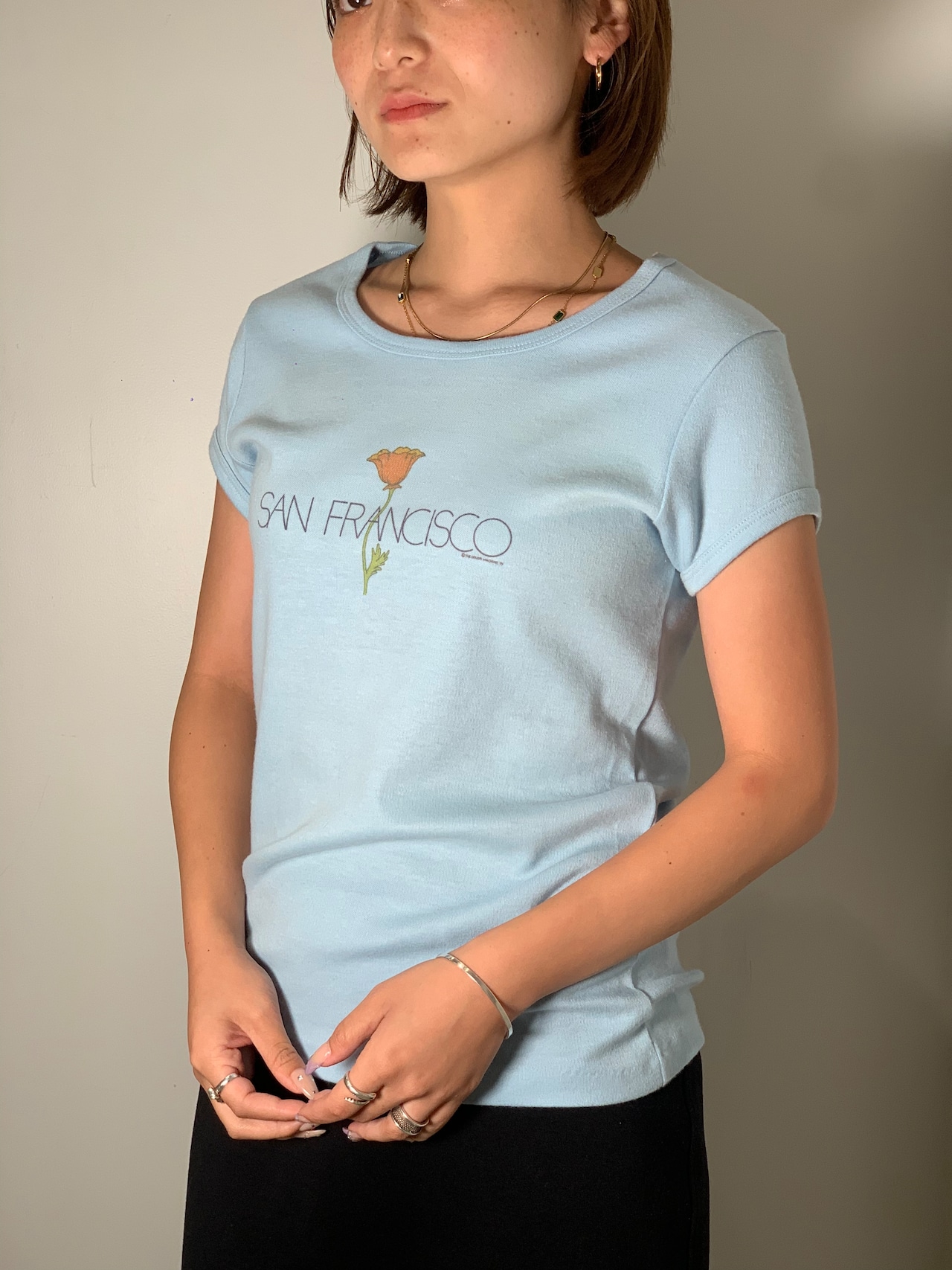 一輪のバラとサンフランシスコの英字のコントラストがこのTシャツの良さを物語ってくれています。