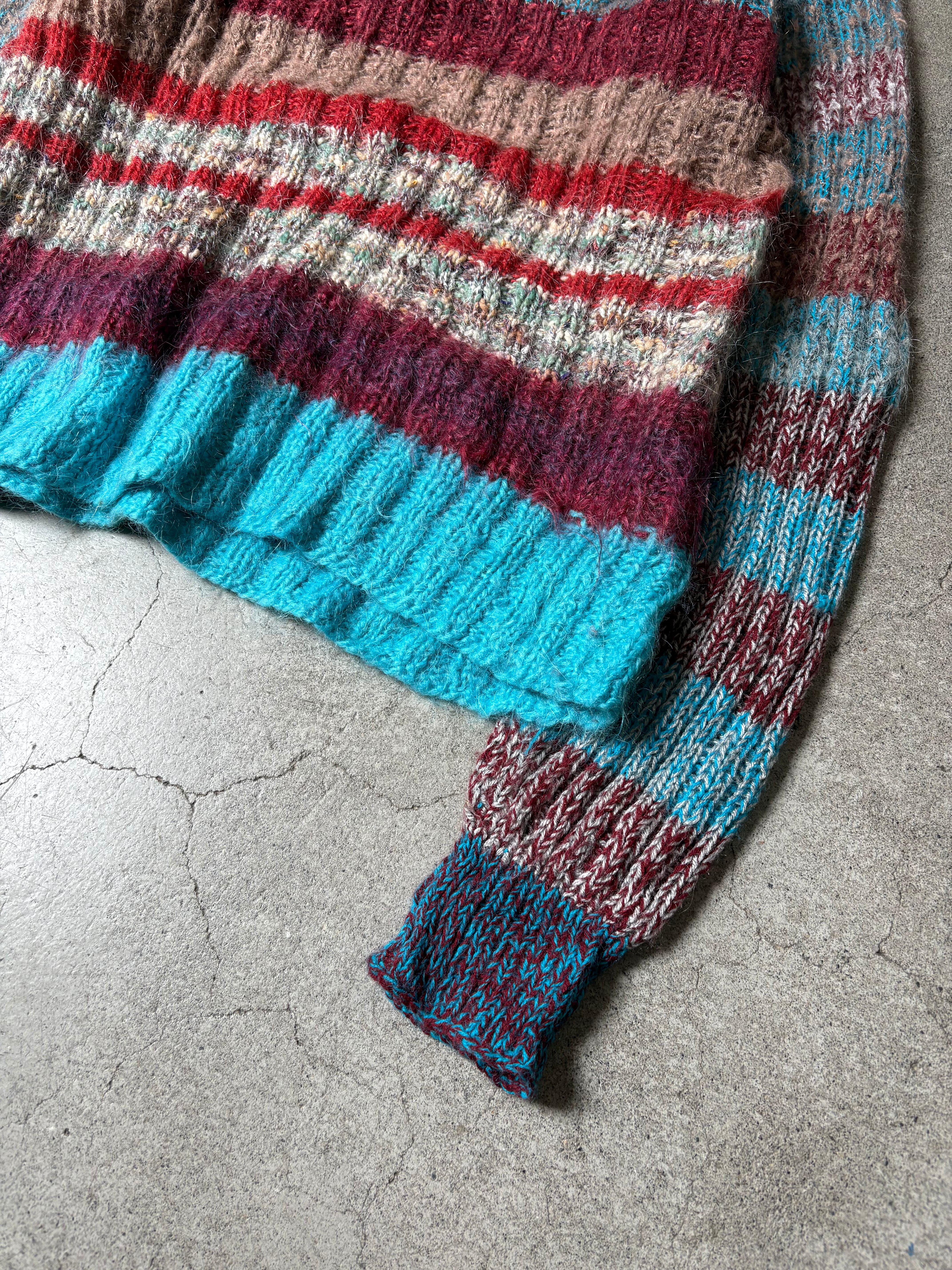 多色からデザインされた大ぶりなボーダーが目を惹くニット。