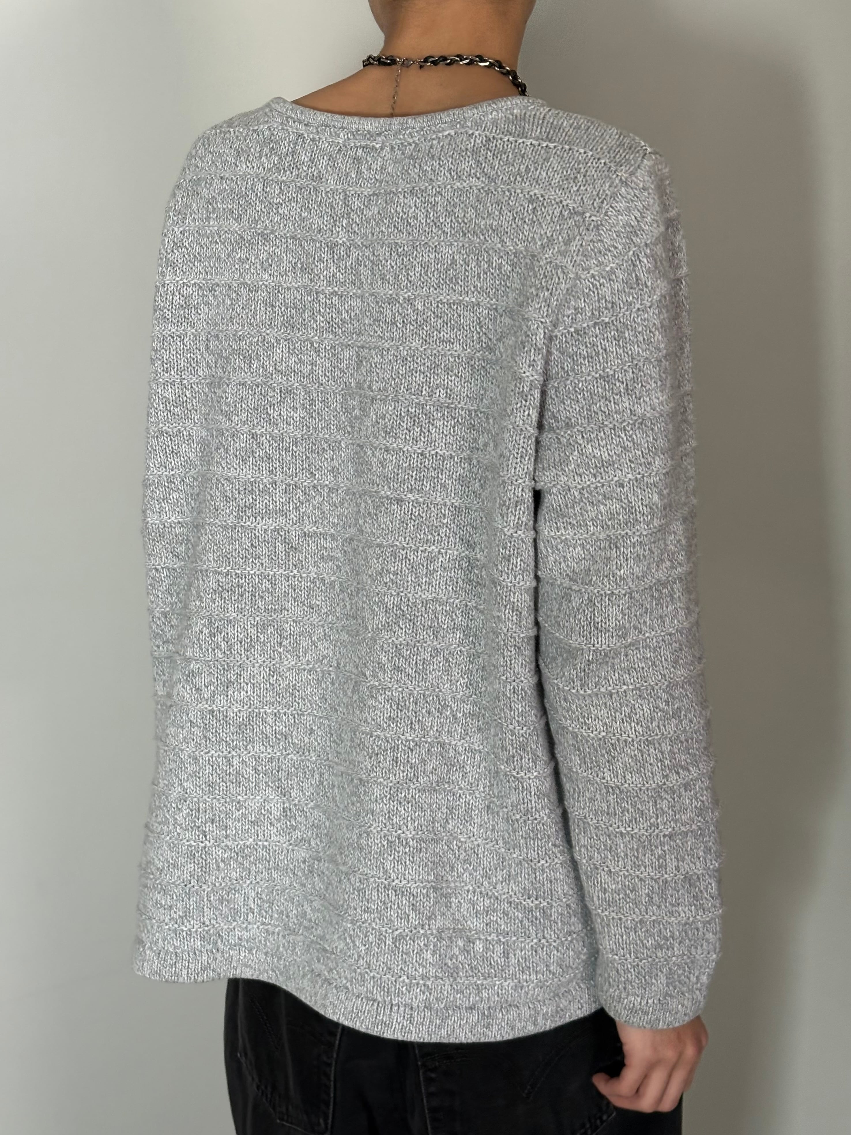 レイヤードを楽しむのも良し、スラックスでも、デニムに合わせても、さらっと毎日選びたくなるニットです。